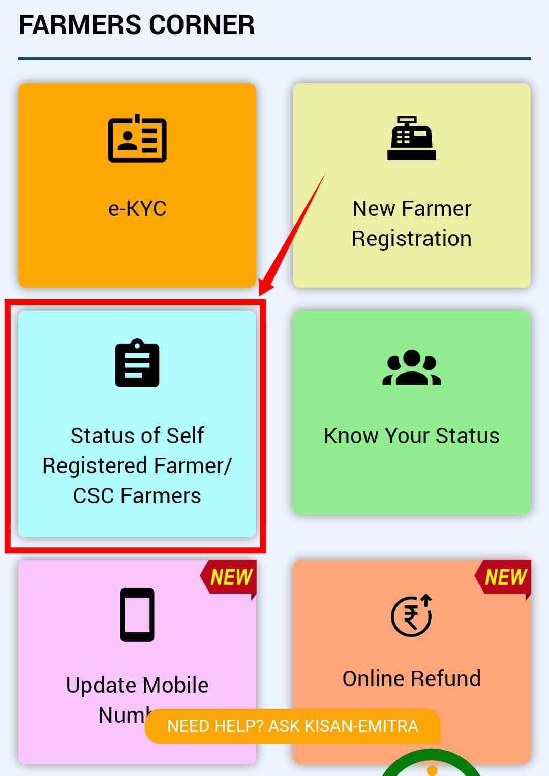 - आपको Farmers Corner में Status of Self Registered Farmer / CSC Farmers ऑप्शन देखने को मिलेगा।